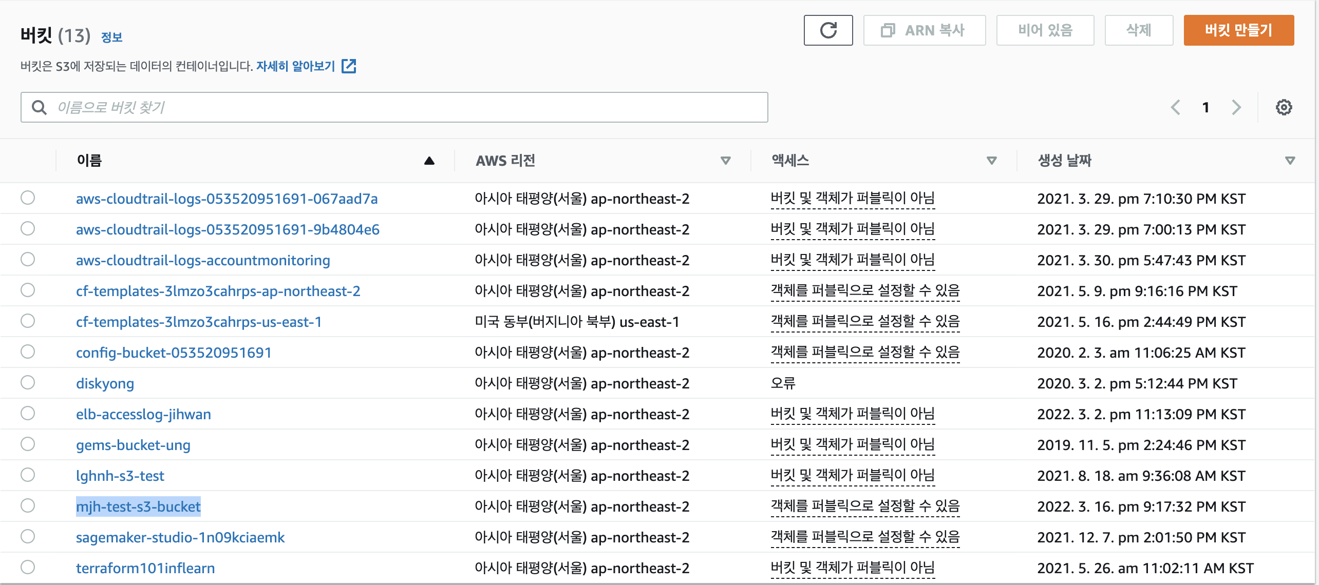 # 기존에 생성한 s3 리소스 import ( import는 Document의 최하단 참고 )