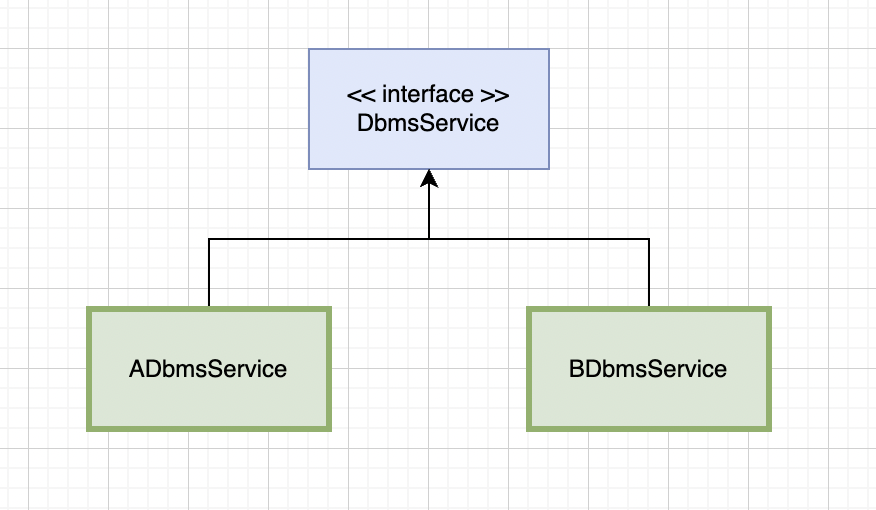만약 반대로 BDbmsService의 showDbmsName() 메소드를 호출하고 싶은 경우 다음과 같이 @Service 어노테이션을 BDbmsService로 수정하면 된다.