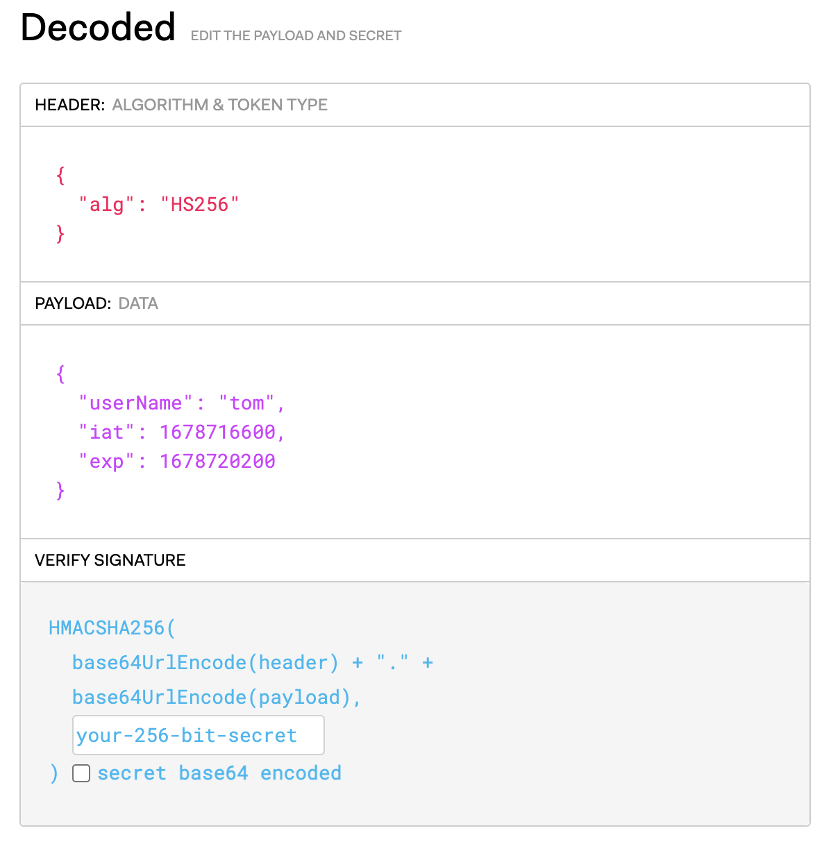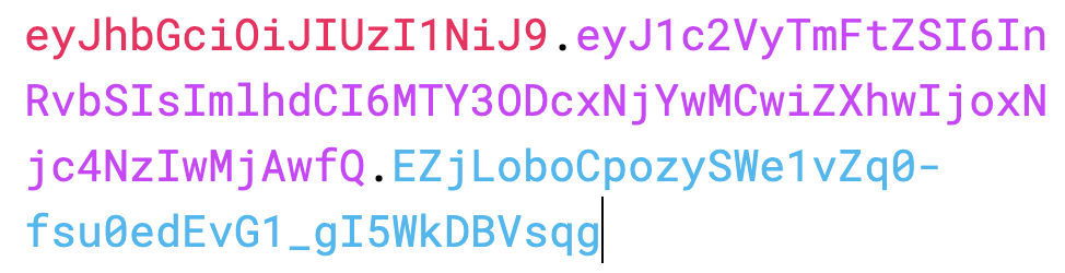 다음은 Header / Payload / Signature 로 구성된 JWT Token 예시를 살펴보자.